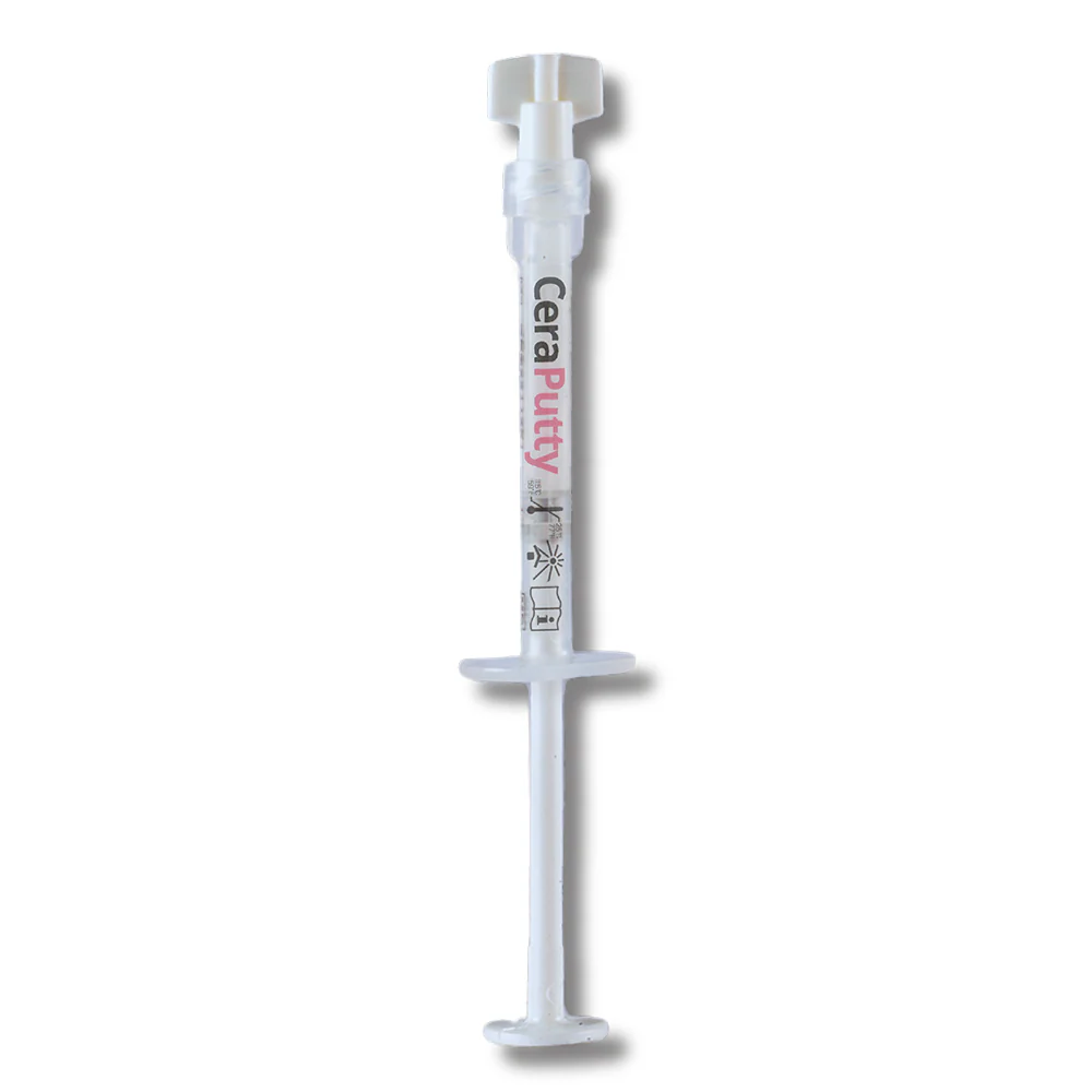 CeraPutty is a premixed putty for permanent root canal repair that sets by absorbing moisture from the canal environment. 2 x CeraPutty 0.5g premixed syringe